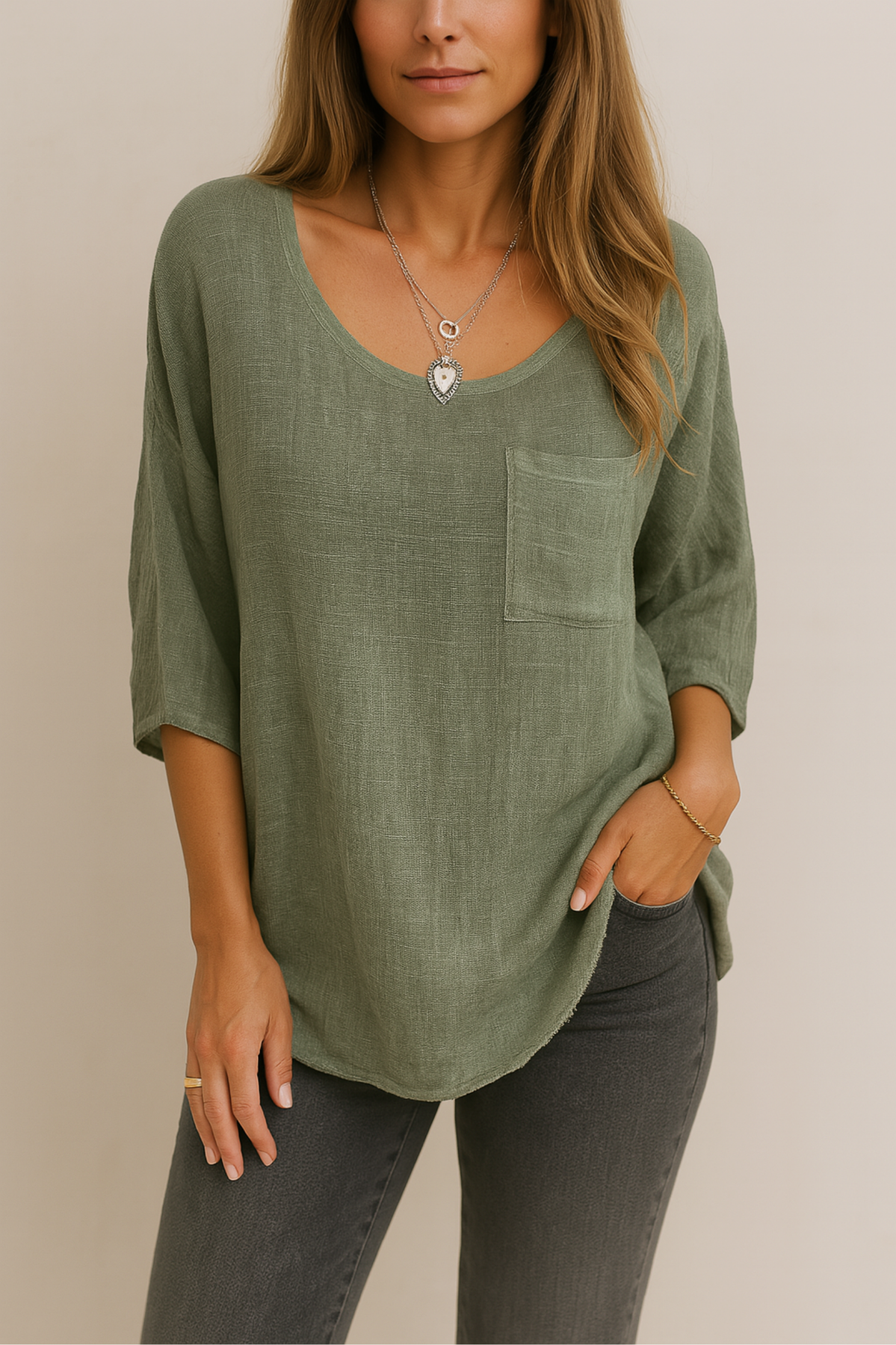 Découvrez un confort et un style ultimes en toute occasion avec notre chemise décontractée Claire. Le mélange de coton doux et aéré offre une liberté de mouvement optimale, tandis que la poche poitrine fonctionnelle apporte une touche de style et un espace pratique pour ranger vos petits objets. La coupe ample et légèrement oversize offre un look décontracté qui suit tous vos mouvements. Elle convient à toutes les occasions, que ce soit pour une journée détendue le week-end ou une journée de travail informelle.